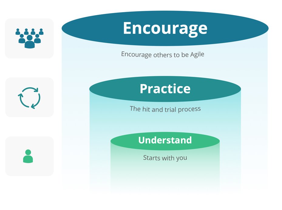 Finally, we can encourage others to be agile by sharing the knowledge and experience we’ve had from the understanding and practice. This might be frustrating sometimes as there may arise a lot of questions. I’ve also faced so many questions like Agile is about too much talk and less work, Team always sits to discuss rather than working from their desk etc. This is the reason why, we need a clear understanding and implementation knowledge to answer those sort of questions to empower others being agile.